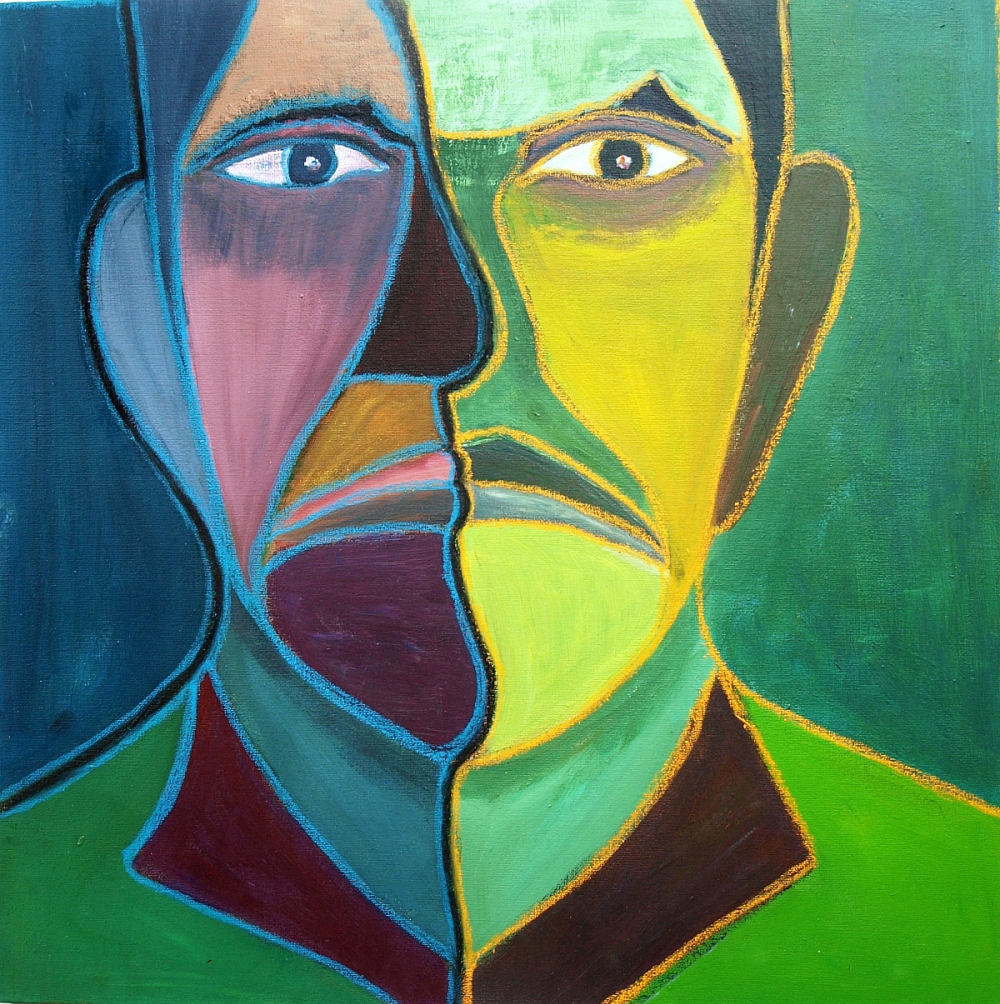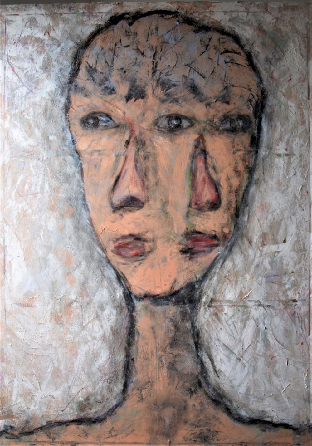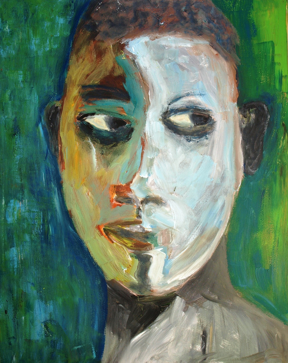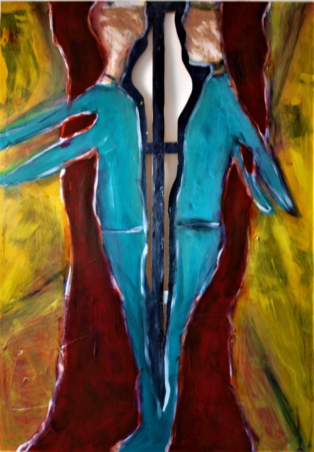 Het beeld en de kleur laten de confrontatie zien van de kunstenaar met zichzelf en zijn persoonlijke situatie