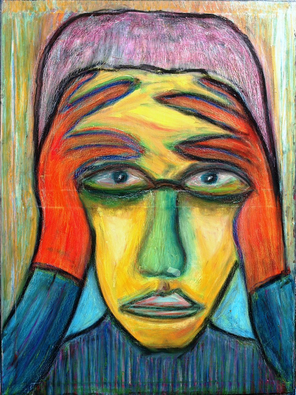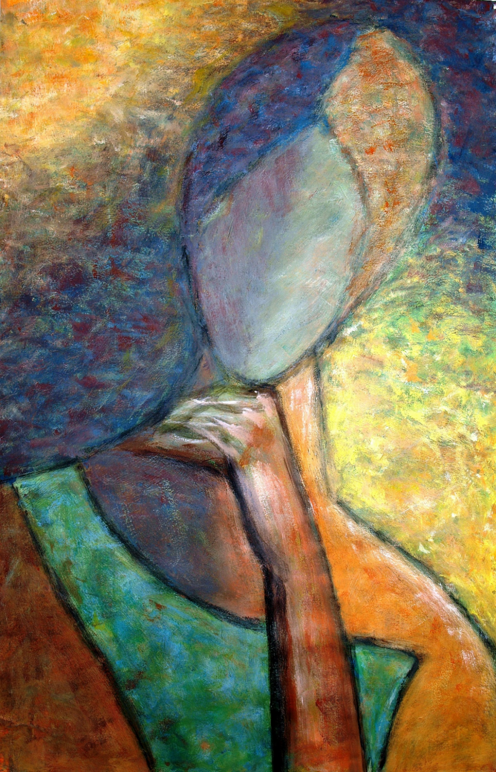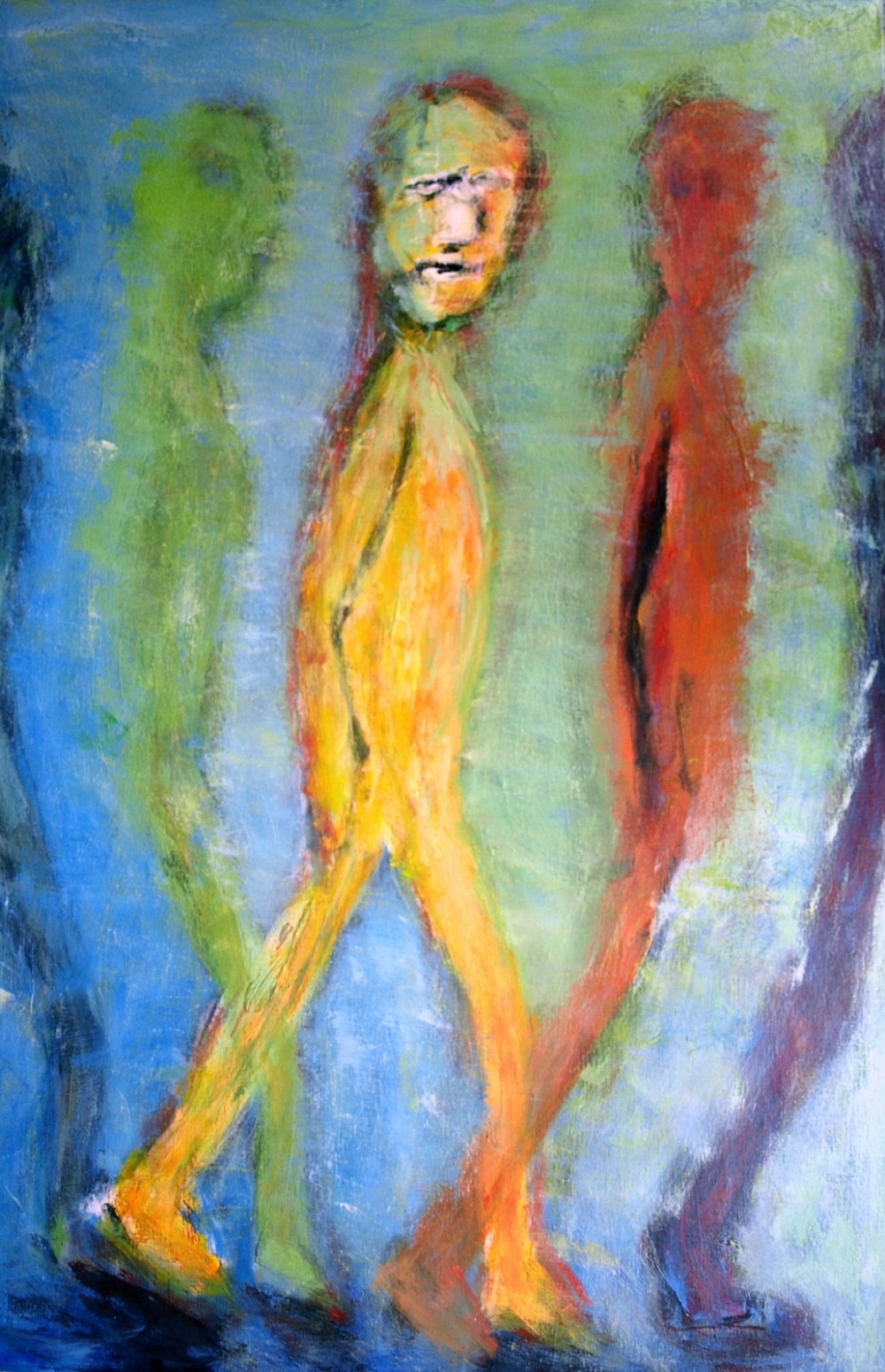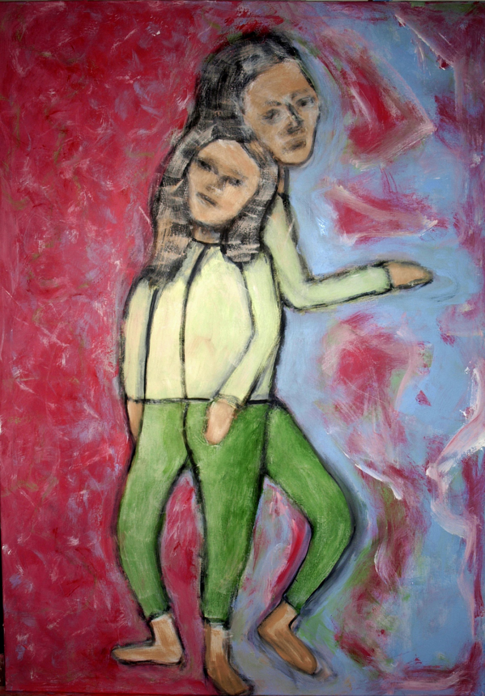 Het beeld en de kleur laten de confrontatie zien van de kunstenaar met zichzelf en zijn persoonlijke situatie