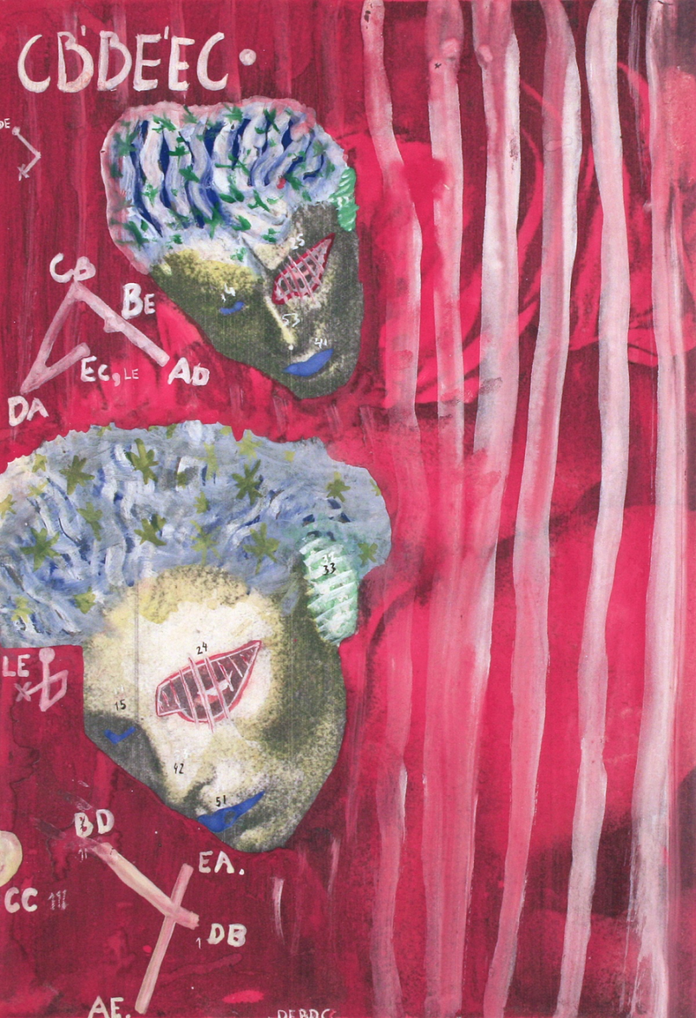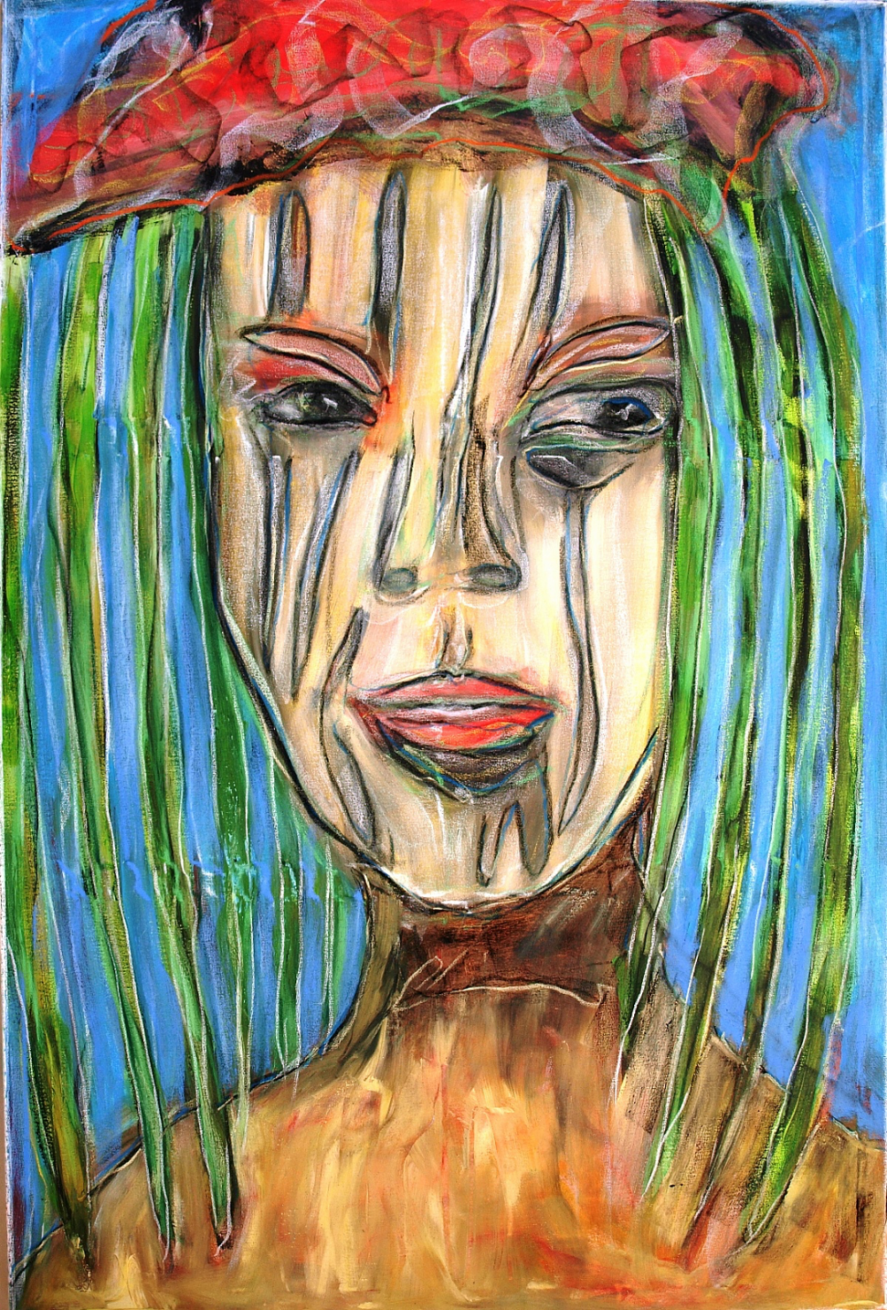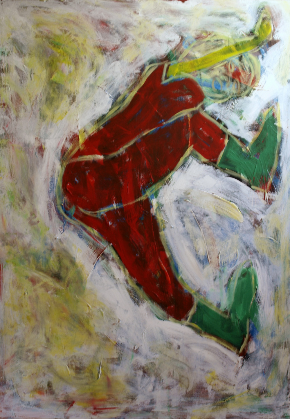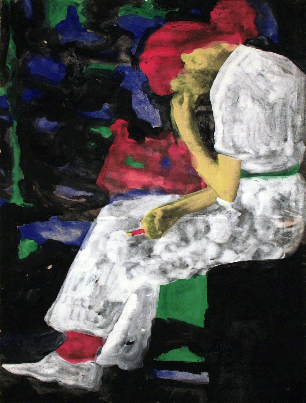 Het beeld en de kleur laten de confrontatie zien van de kunstenaar met zichzelf en zijn persoonlijke situatie