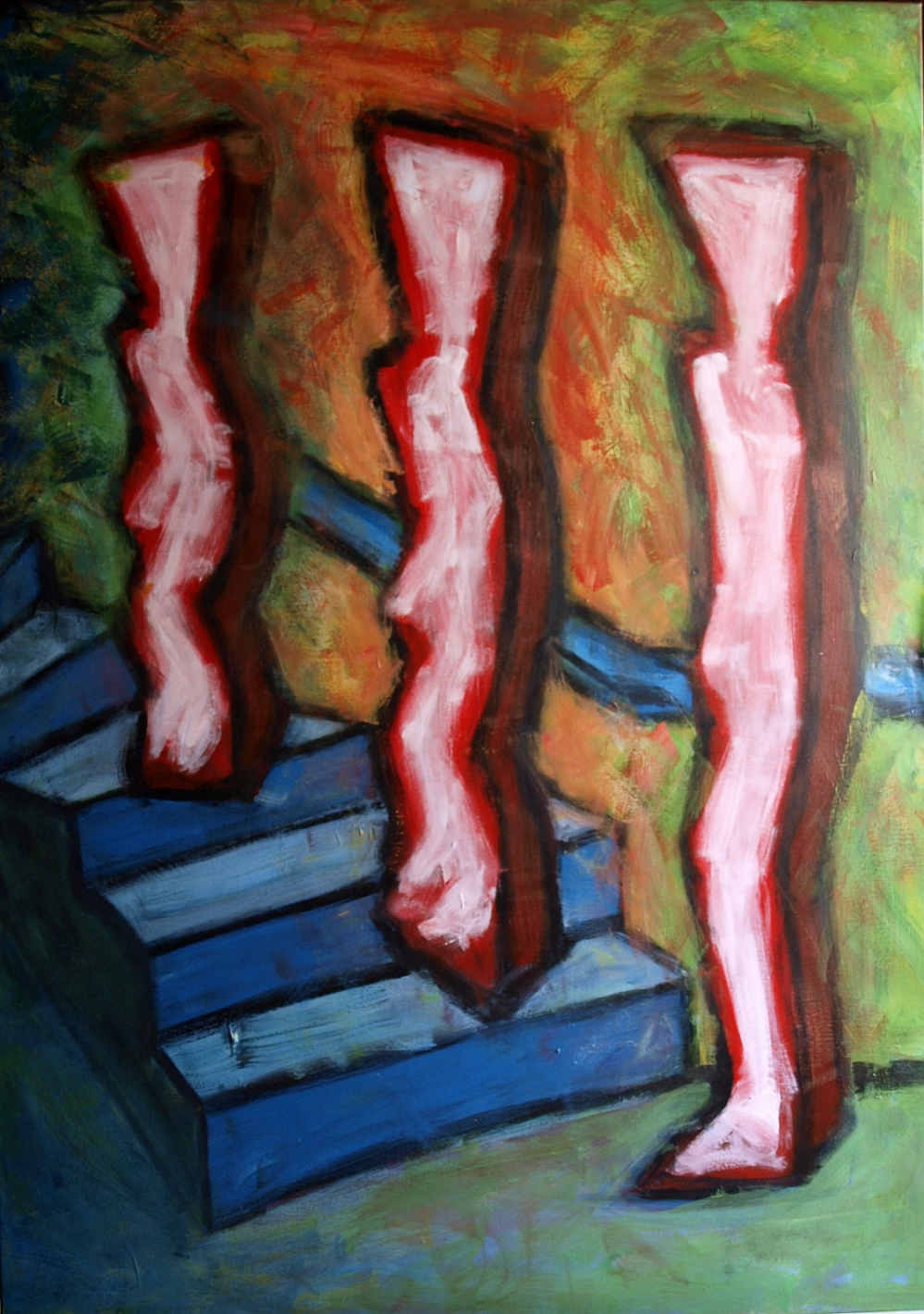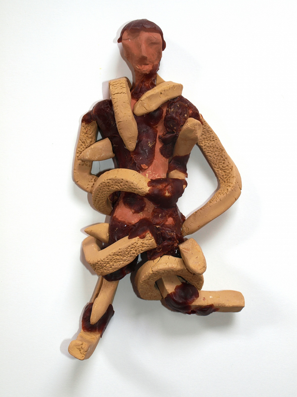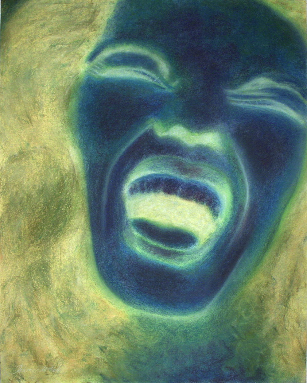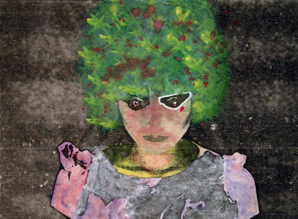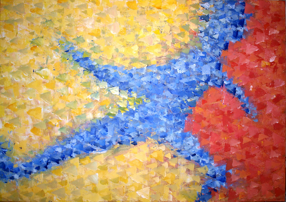 Het beeld en de kleur laten de confrontatie zien van de kunstenaar met zichzelf en zijn persoonlijke situatie